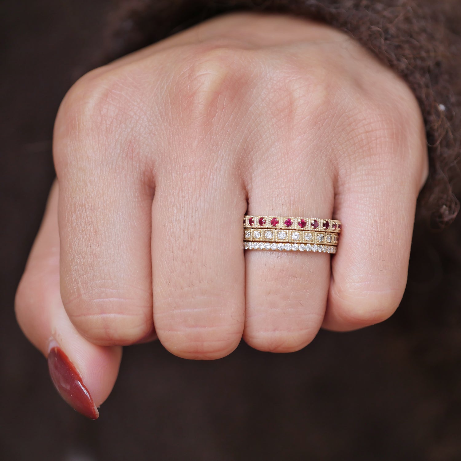Re-sizing: Due to the eternity style of this ring, we can only re-size up 1/4 size.