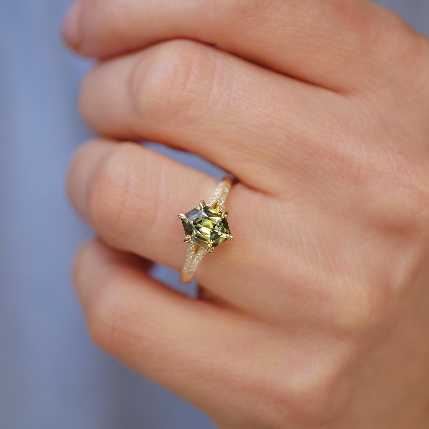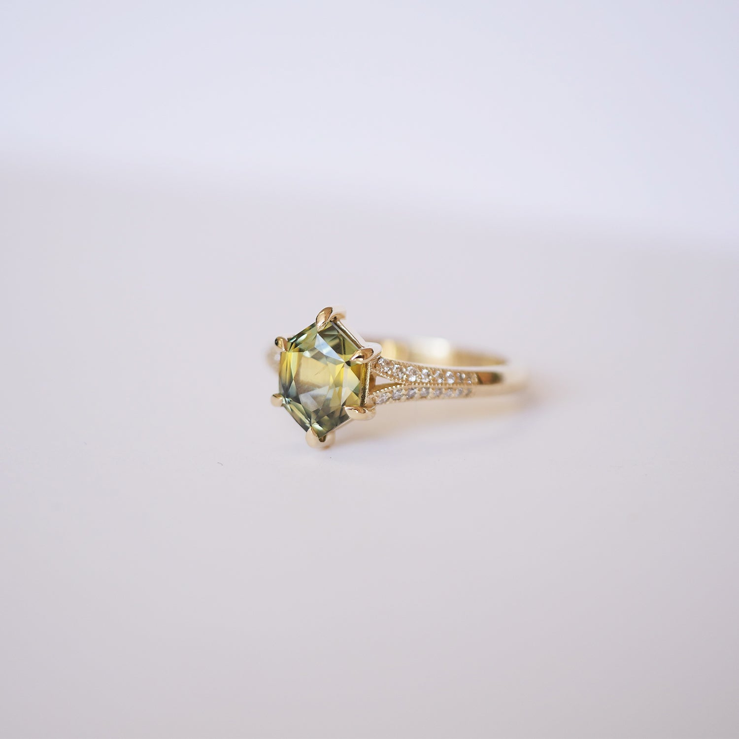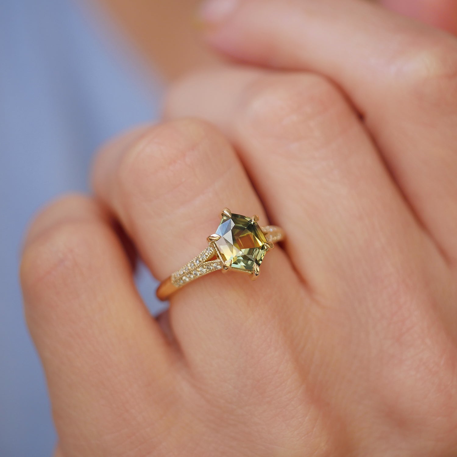 Custom Split Shank Hexagon Sapphire Diamond Ring