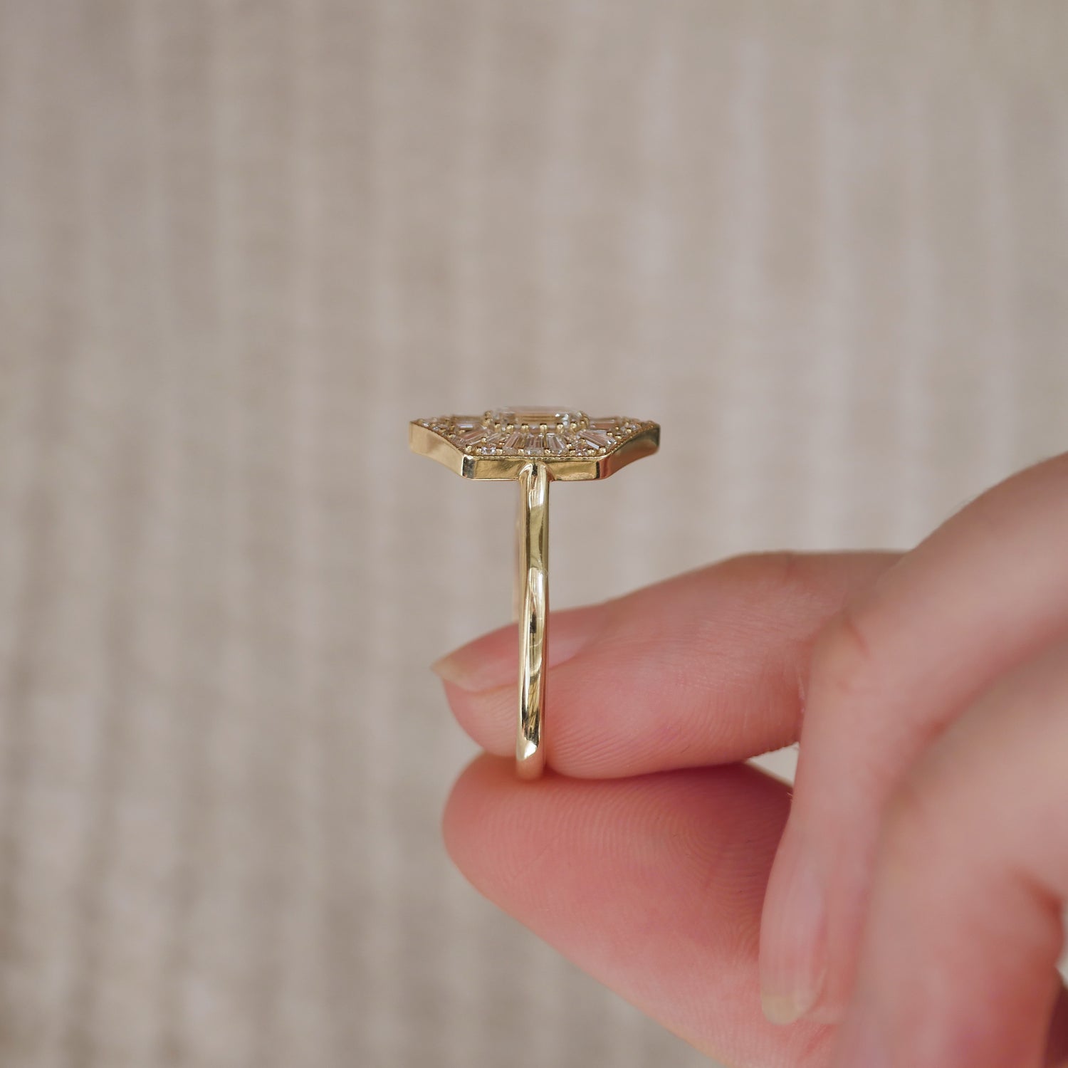 Elongated Hexagon Emerald Ballerina Diamond Mosaic Ring